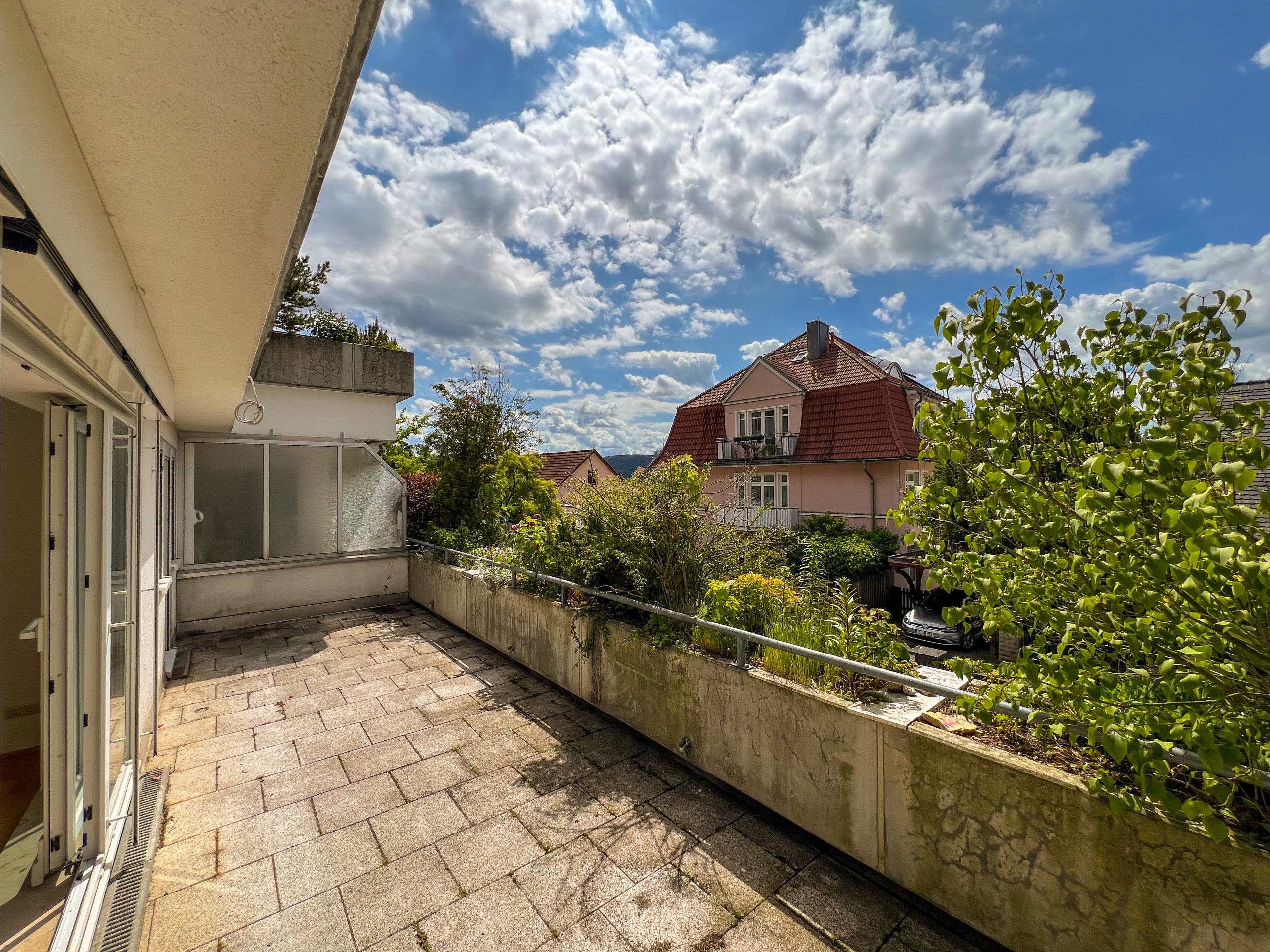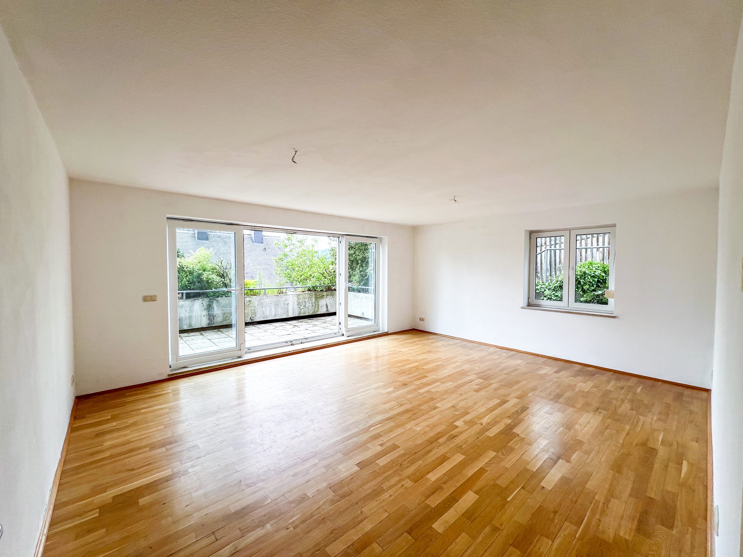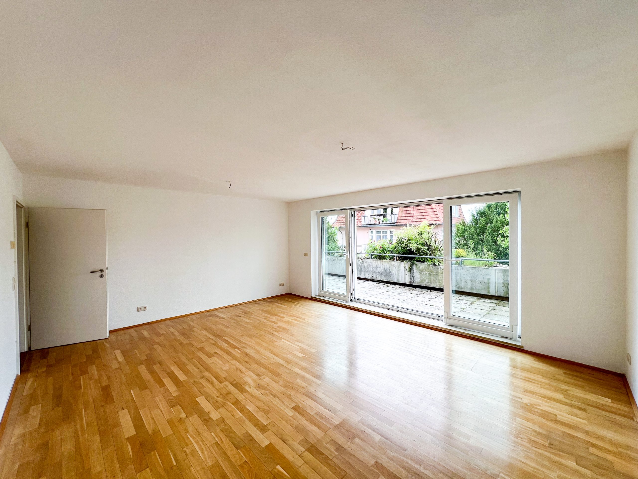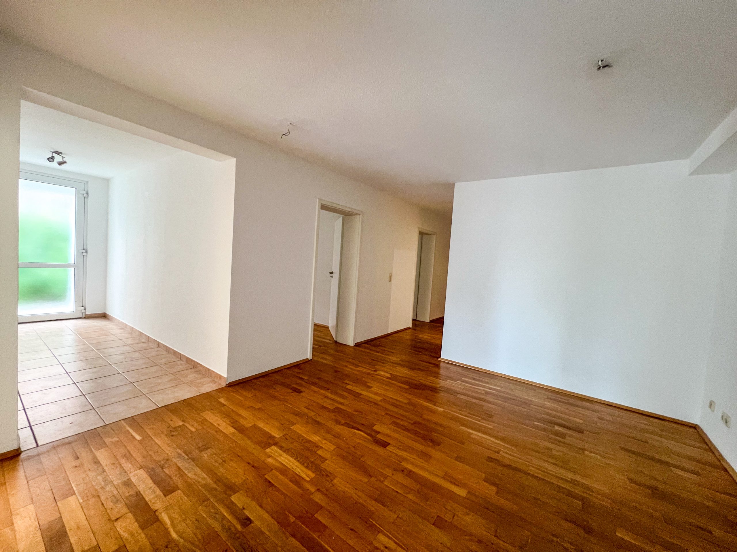 Das Herzstück der Wohnung ist das weitläufige Wohnzimmer, das durch seine Offenheit und Helligkeit beeindruckt. Von hier aus haben Sie direkten Zugang zur sonnigen, nach Süden ausgerichteten Terrasse. Die angrenzende Küche ist nicht nur funktional gestaltet, sondern verfügt auch über einen zusätzlichen Zugang zur Terrasse – ideal für gesellige Abende oder entspannte Frühstücke im Freien.