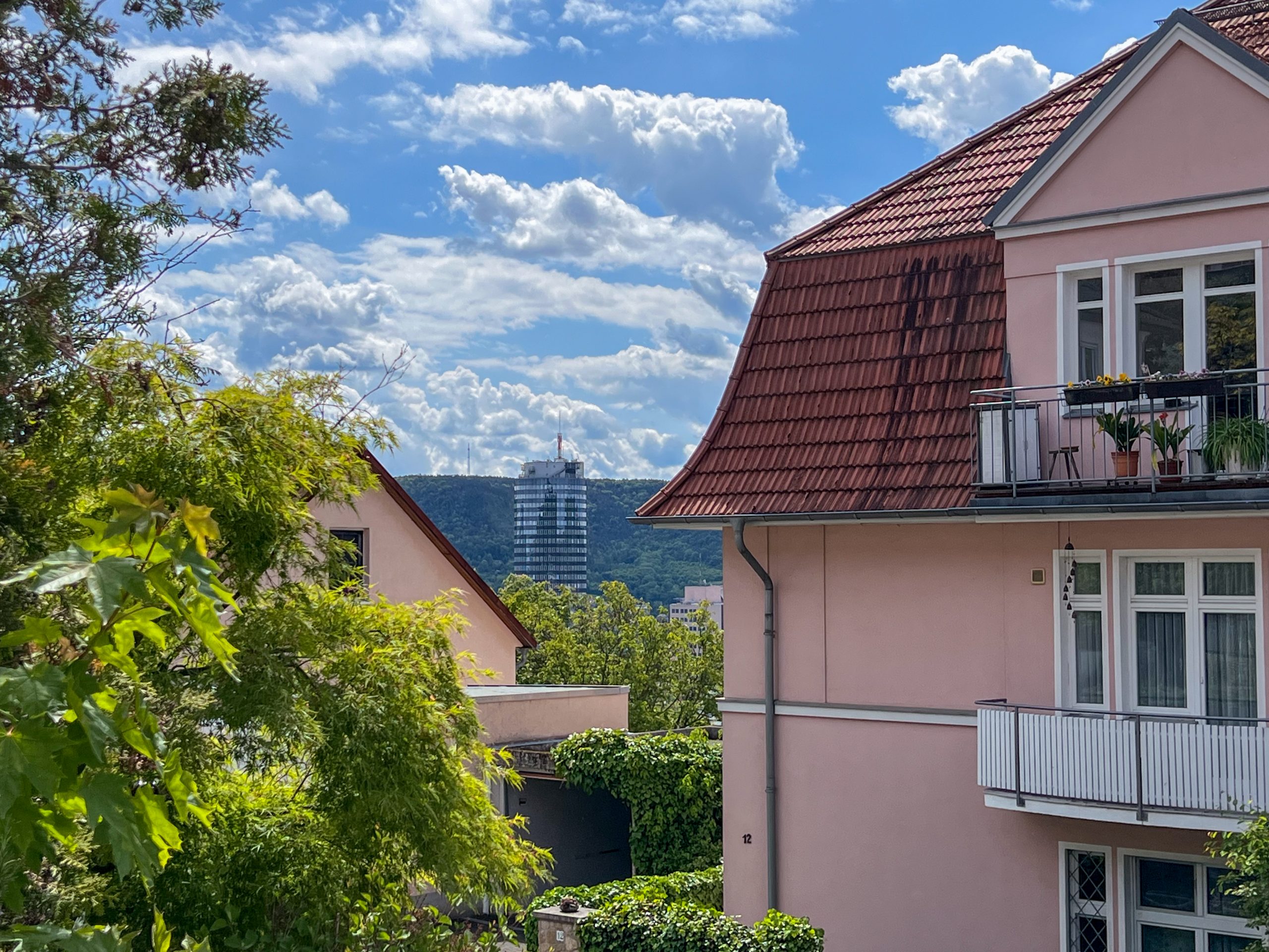 Die Wohnung in der Schillbachstraße 13 befindet sich in einer der begehrtesten Lagen Jenas – im Stadtteil Sonnenberge, direkt unterhalb des Landgrafen. Diese Gegend zeichnet sich durch eine harmonische Verbindung aus ruhigem, naturnahem Wohnen und einer hervorragenden Anbindung an die städtische Infrastruktur aus. Die Nachbarschaft ist geprägt von gepflegten, individuellen Wohnhäusern und einer angenehmen Wohnkultur, die seit der Jahrhundertwende das positive Image dieses Standorts maßgeblich mitbestimmt.