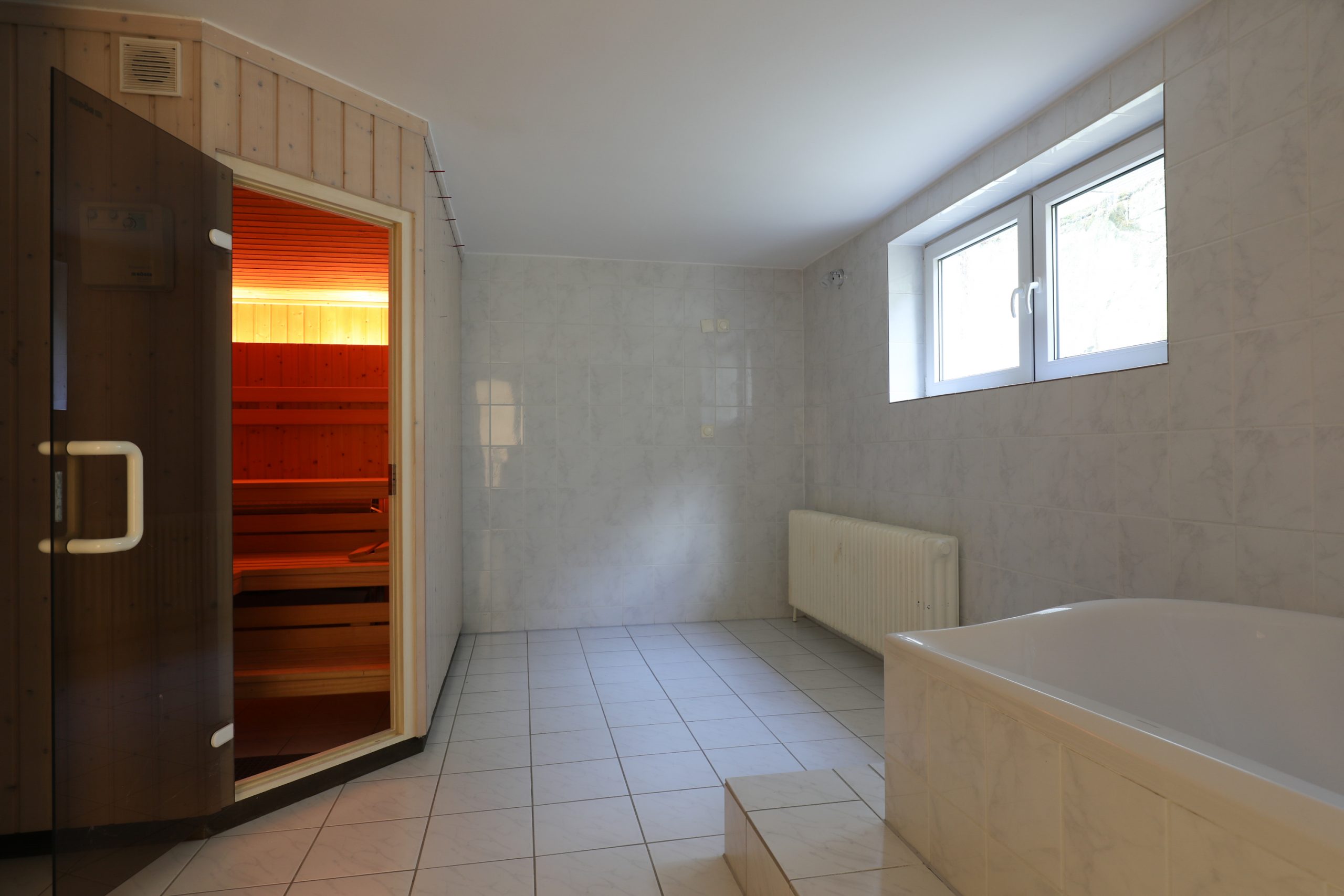 Die untere Ebene des Hauses verfügt über einen separaten Eingang und bietet vielseitige Nutzungsmöglichkeiten. Über ein Wintergarten gelangen Sie in einen großzügigen Raum, der als Hobbyraum oder eigenständiges Apartment genutzt werden kann. Ein weiterer Raum kann als Küche eingerichtet werden, ergänzt durch ein Duschbad. Auf dieser Ebene befinden sich zudem ein Wellnessbereich mit Sauna sowie ein vollwertiges Bad mit Dusche, Badewanne, WC und Waschbecken, ein Gästezimmer, eine Werkstatt, ein Waschraum und der Heizkeller.